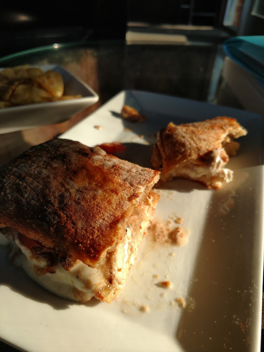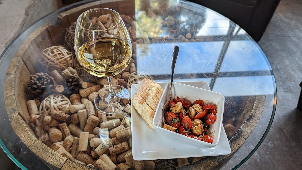 Yummy Glass of White Wine & a very different variation on a caprese salad; Luved it!!Sitting all cozy in a puffy chair by the fire was exactly what the Doc ordered!!